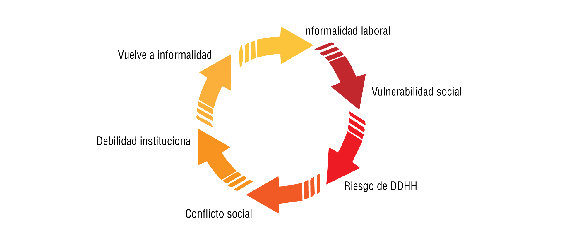 Desde una perspectiva de pensamiento sistémico, los riesgos en derechos humanos pueden entenderse como el resultado de dinámicas interconectadas, tales como la informalidad laboral, la vulnerabilidad socioeconómica, la debilidad institucional, la presencia de economías ilícitas, así como la falta de trazabilidad en cadenas de valor que acompañan a las industrias. Estas dinámicas pueden amplificar los riesgos en derechos humanos si no se gestionan de manera preventiva.